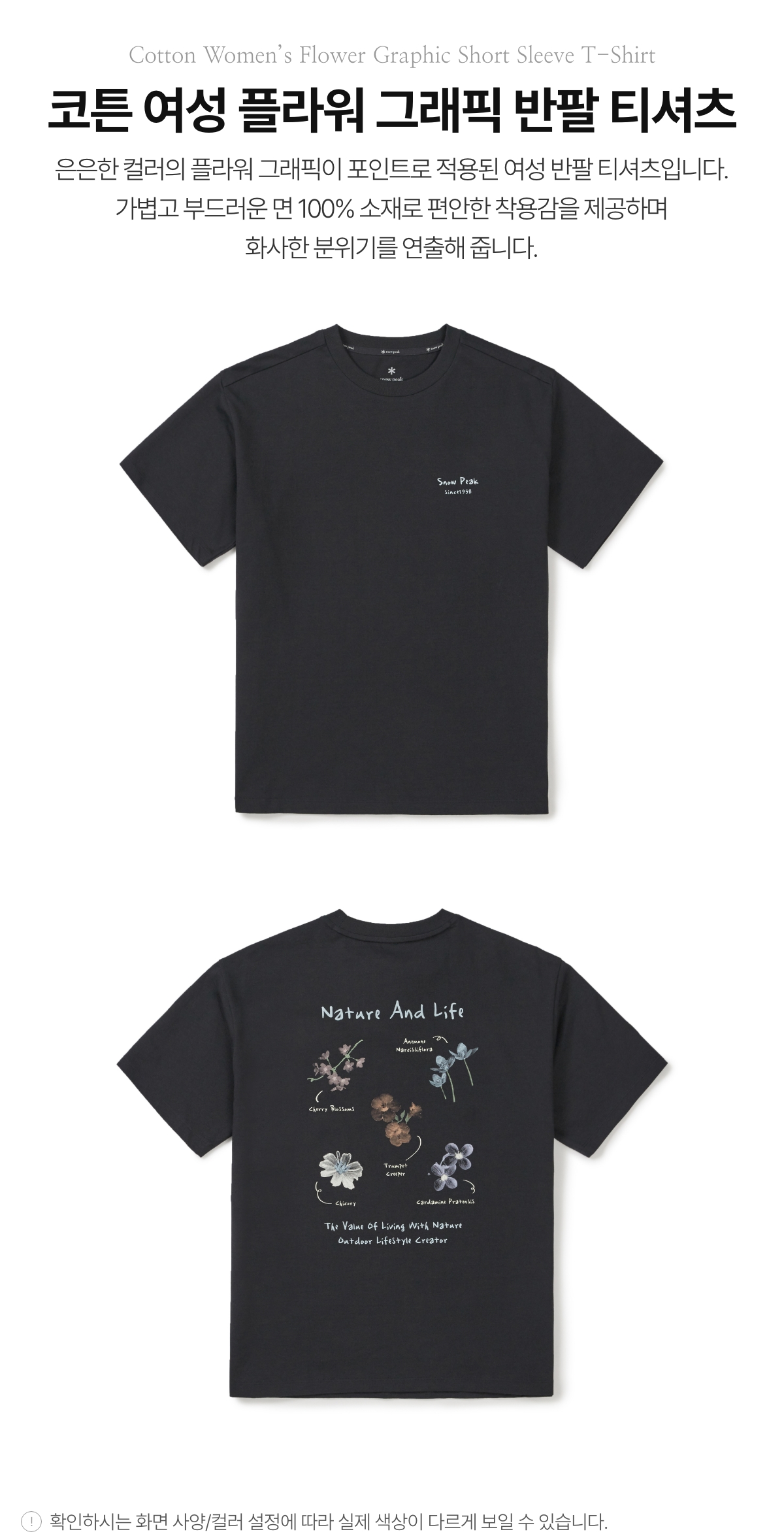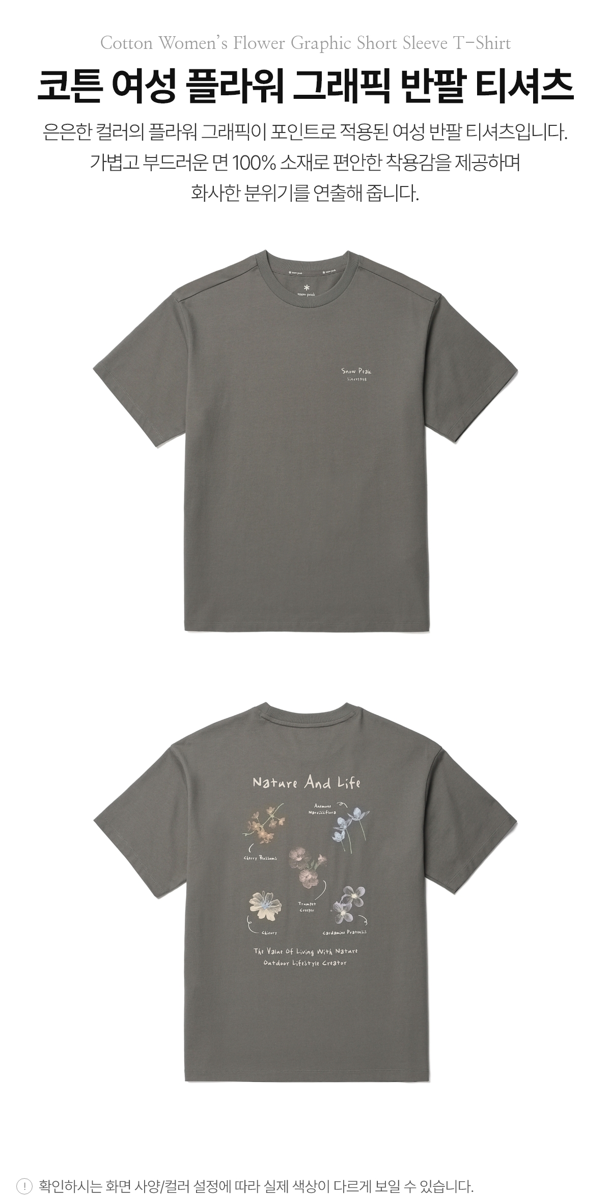 [스노우피크] 26SS 코튼 여성 플라워 그래픽 반팔 티셔츠